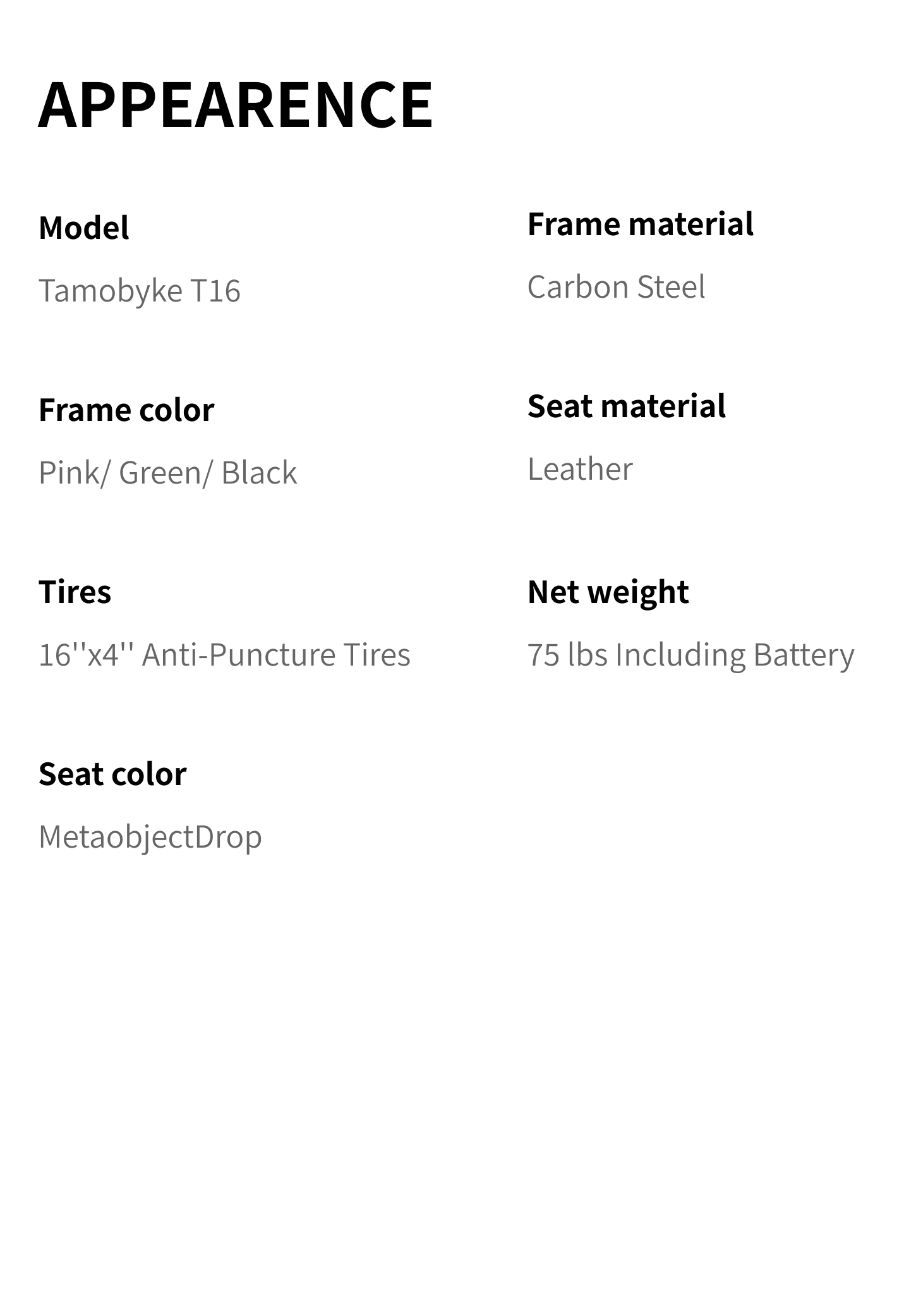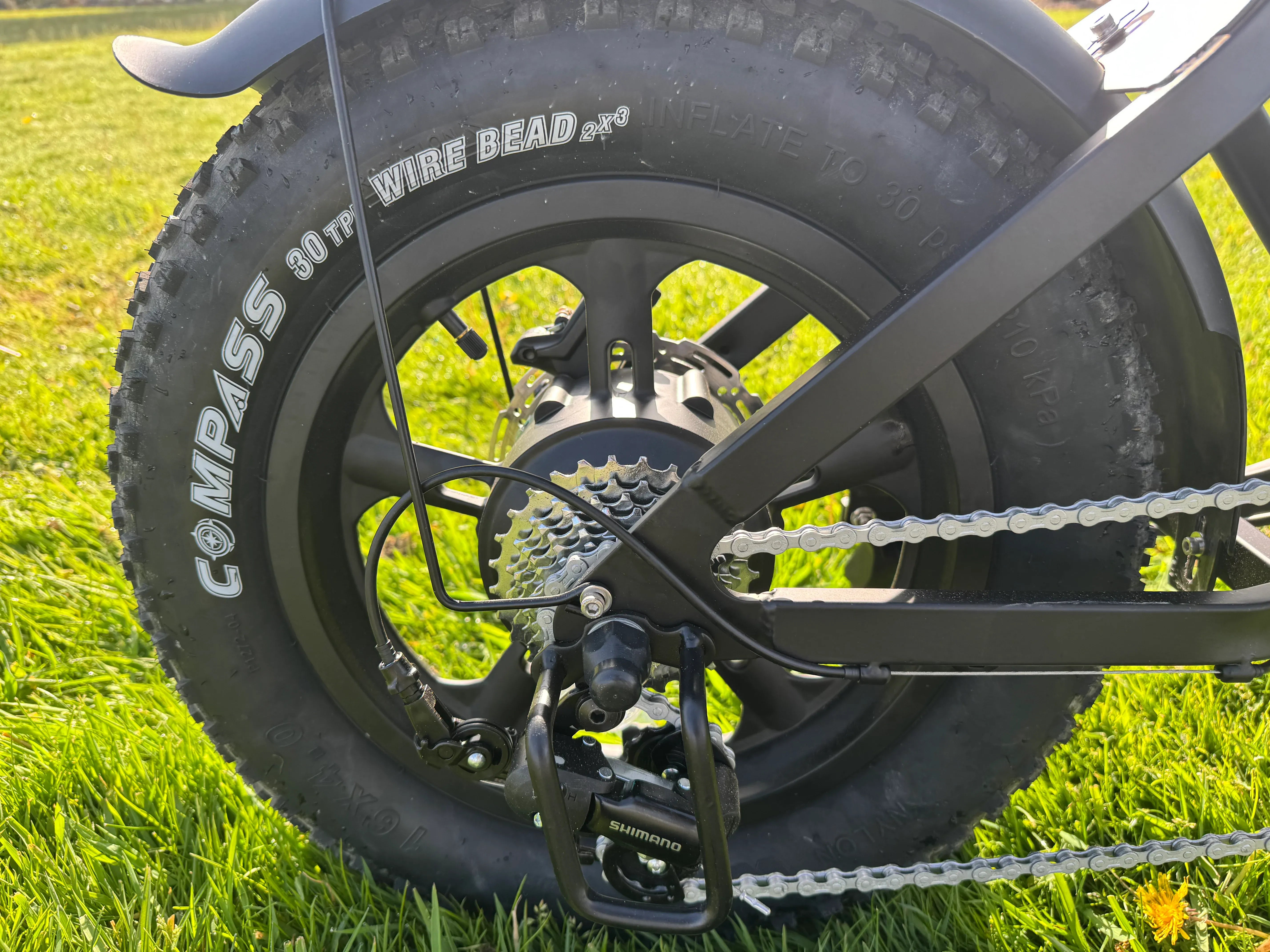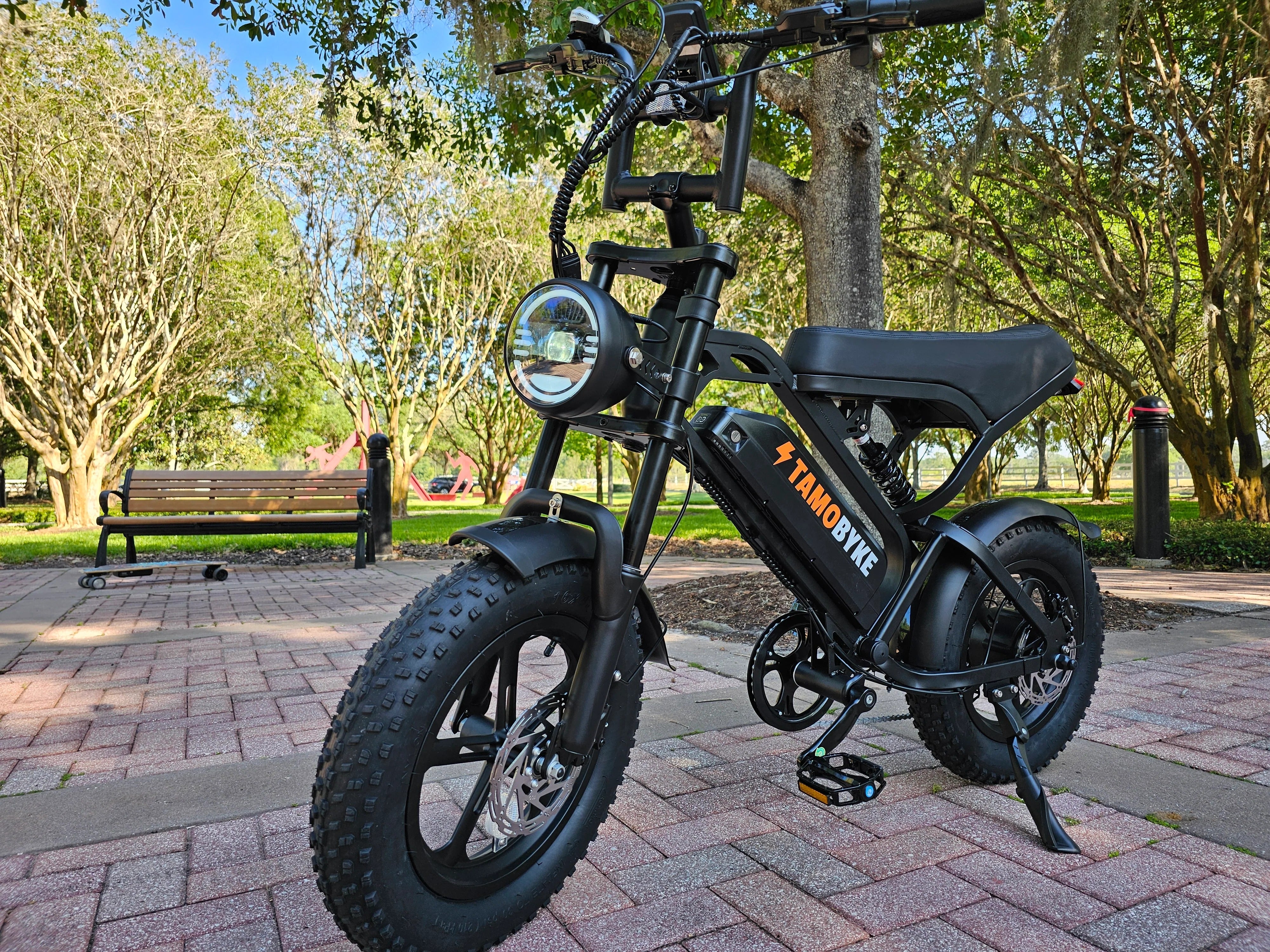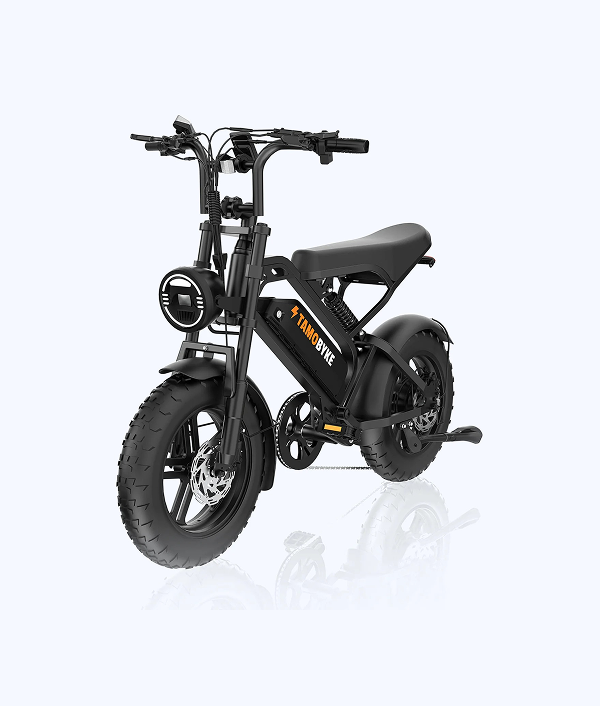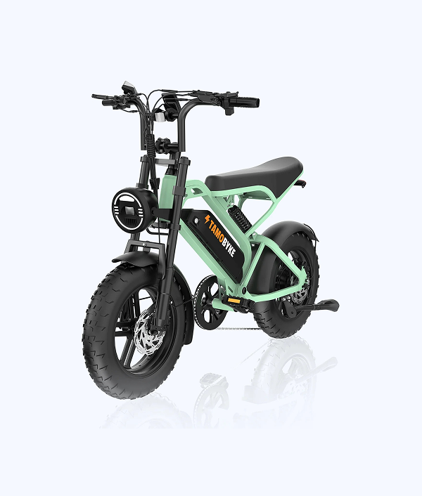 The Tamobyke All-Terrain Fat Tire, With 16" x 4" thick tires, it conquers diverse terrains. City Road, Mountain Road, Snow Road, Sand Road