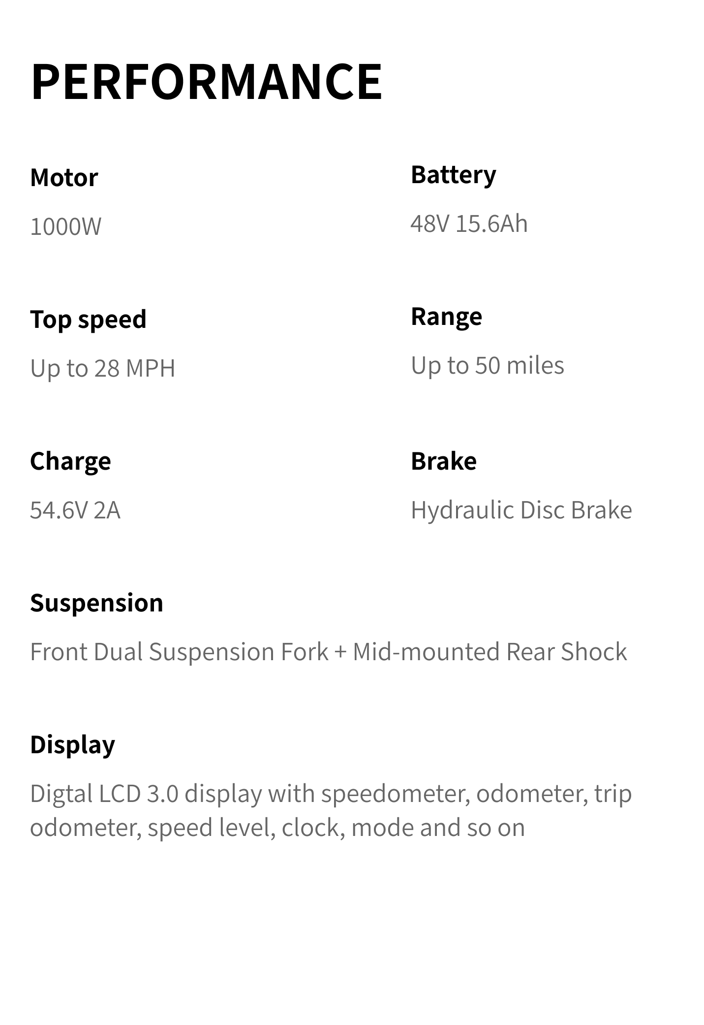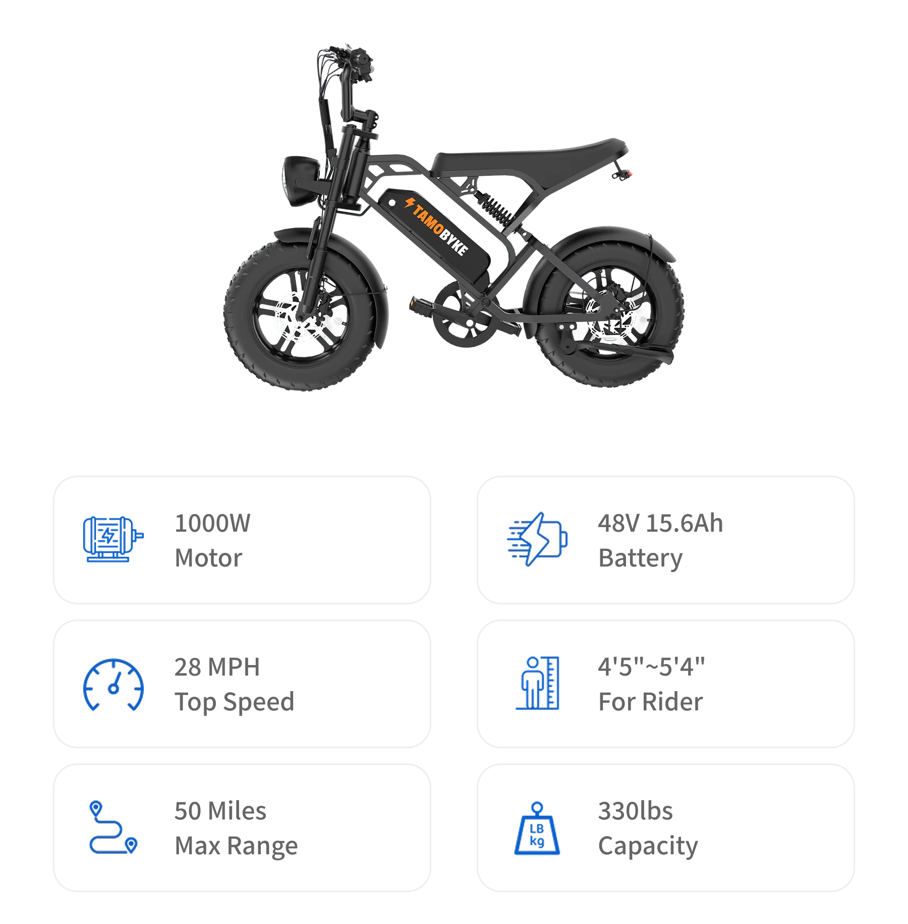 1000W Motor |28 Mph |48V 15.6Ah Battery |50 Miles |4'5" to 5'4"