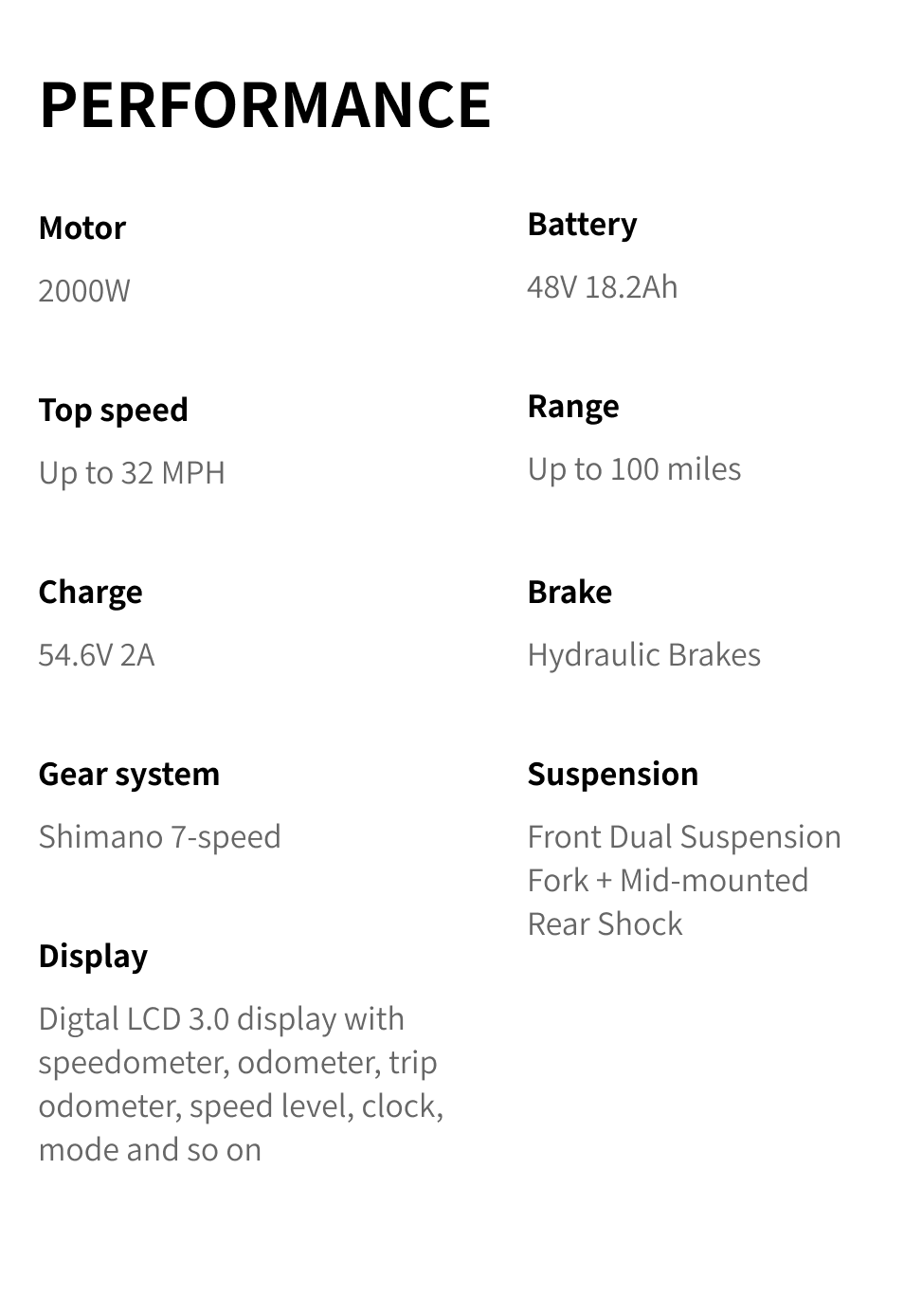 2000W Peak Motor | 33 Mph | 48V 18.2Ah Removable Battery | Fat 20x4.0” Tires | Riders 5'5"–6'5" | 80-Mile