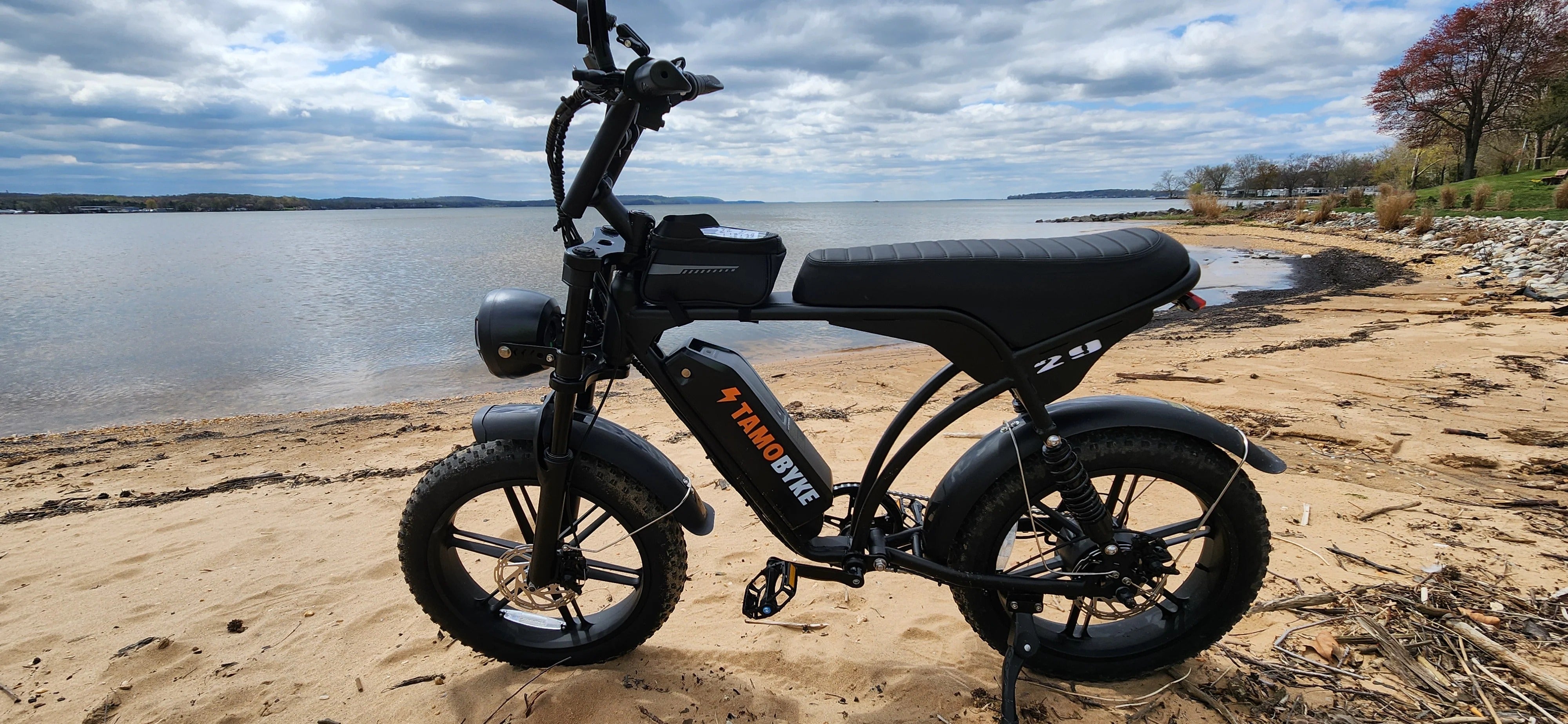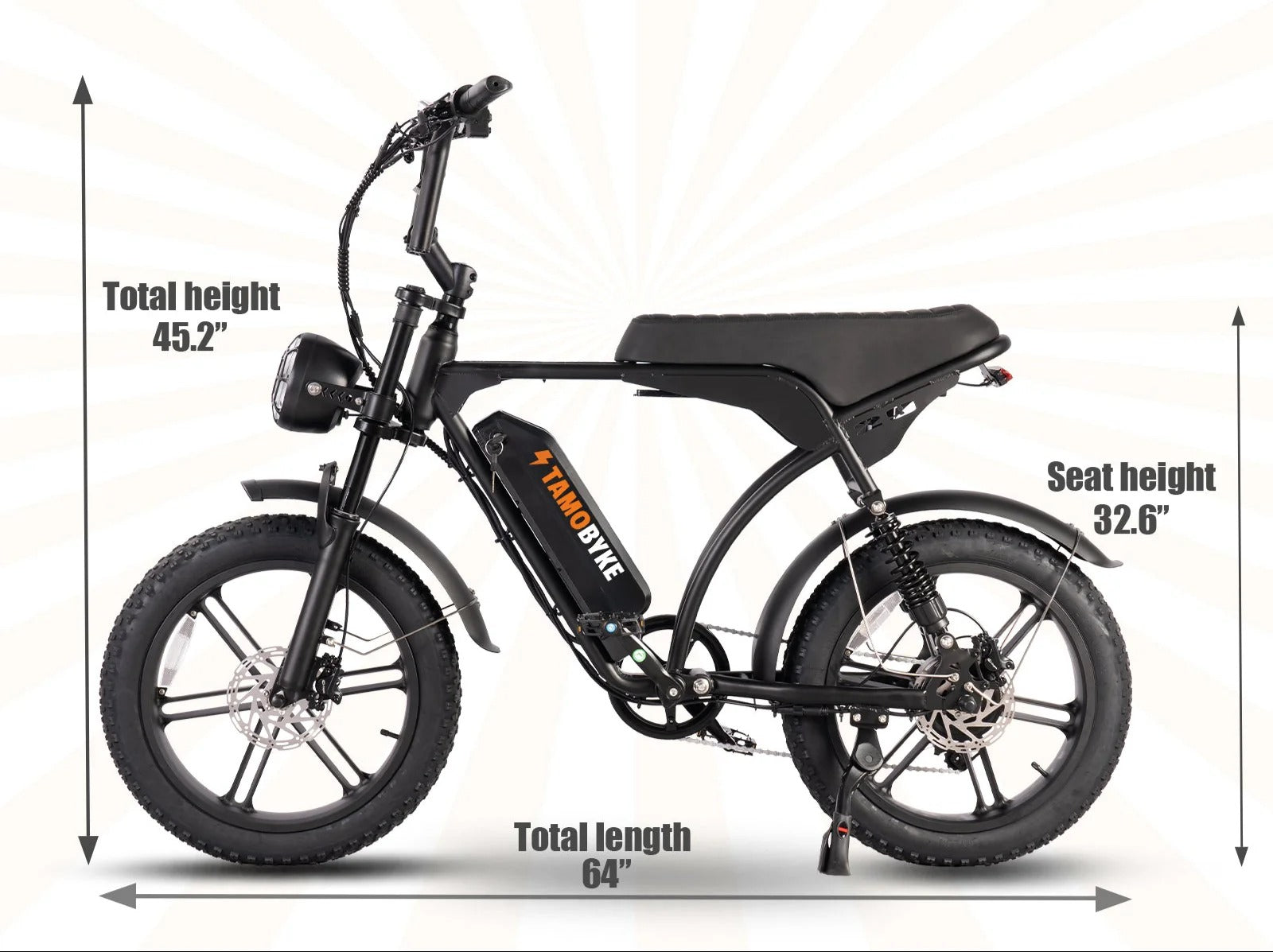 The Tamobyke All-Terrain Fat Tire, With 20" x 4" thick tires, it conquers diverse terrains. City Road, Mountain Road, Snow Road, Sand Road