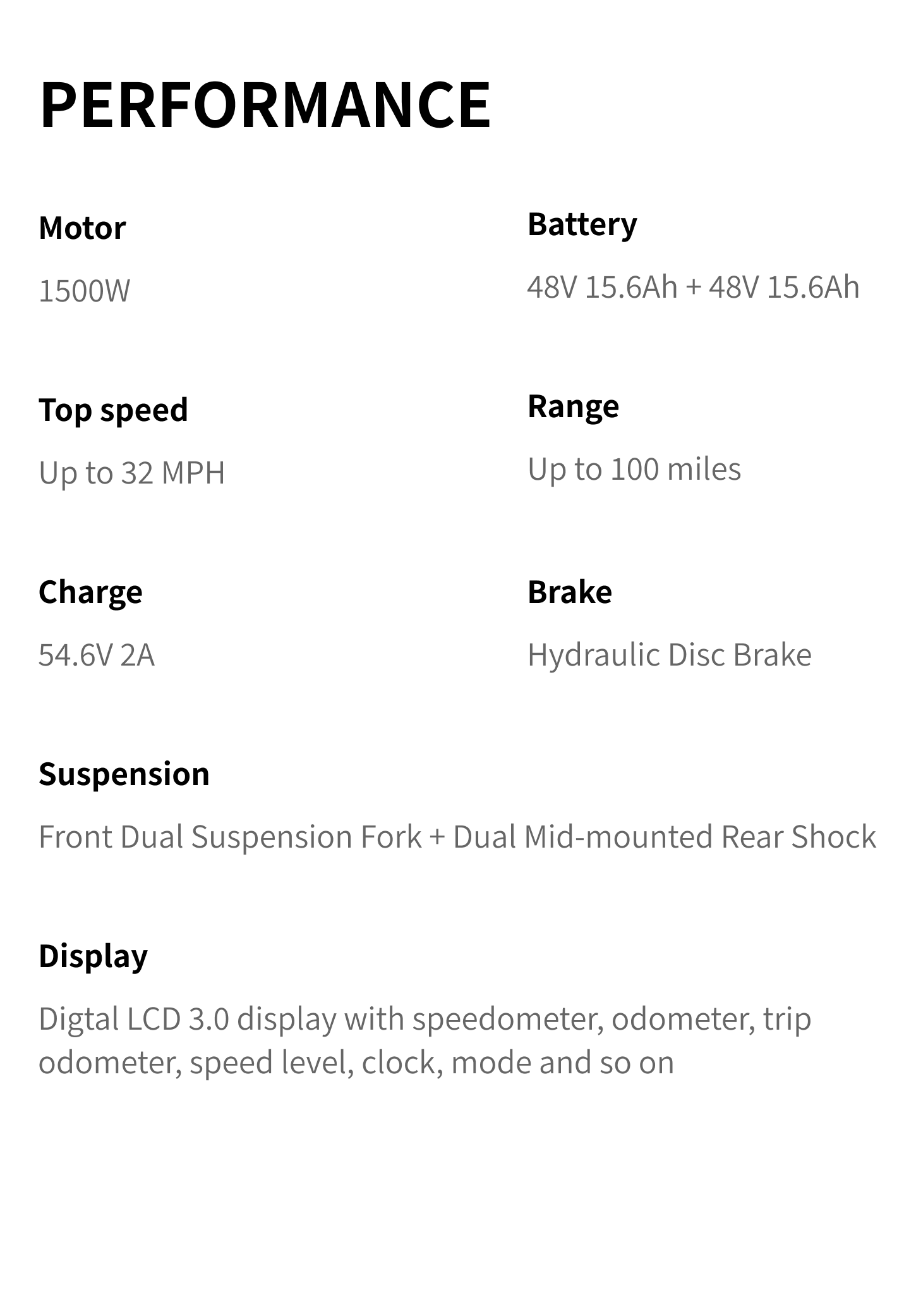 1000w Motor | 32 Mph Top Speed | 70 Miles Max Range | 90% Assembled