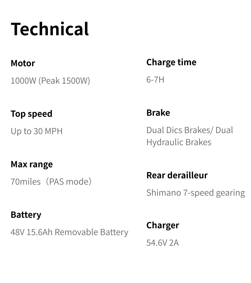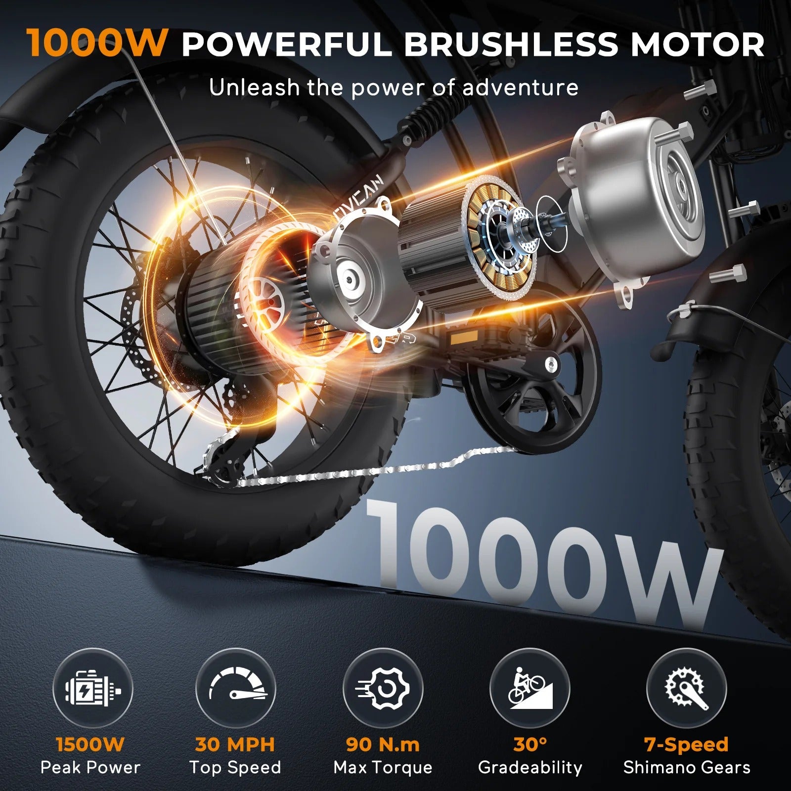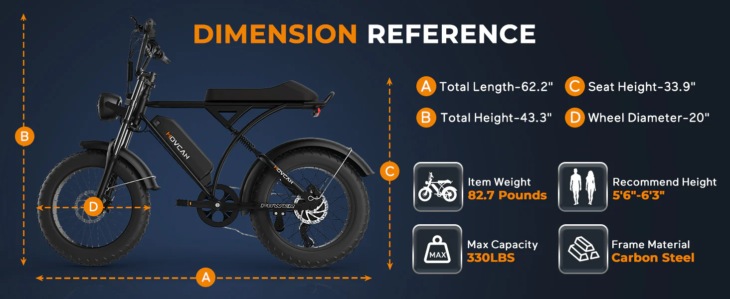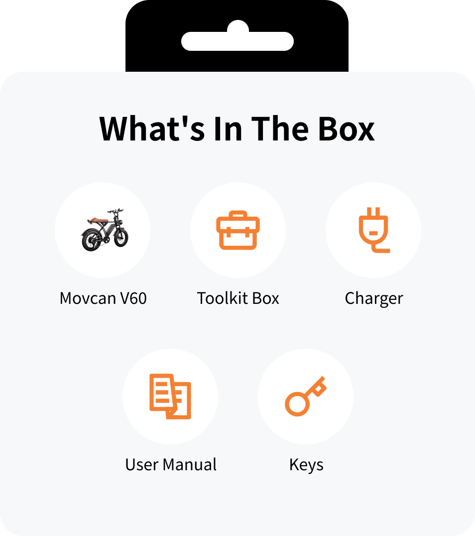 1000W Powerful Motor & 30MPH Max Speed - Built-in a 1000W brushless hub motor, Movcan V60 electric bike for adults can reach a top speed of 30MPH and easily overcome 30° steep hills.